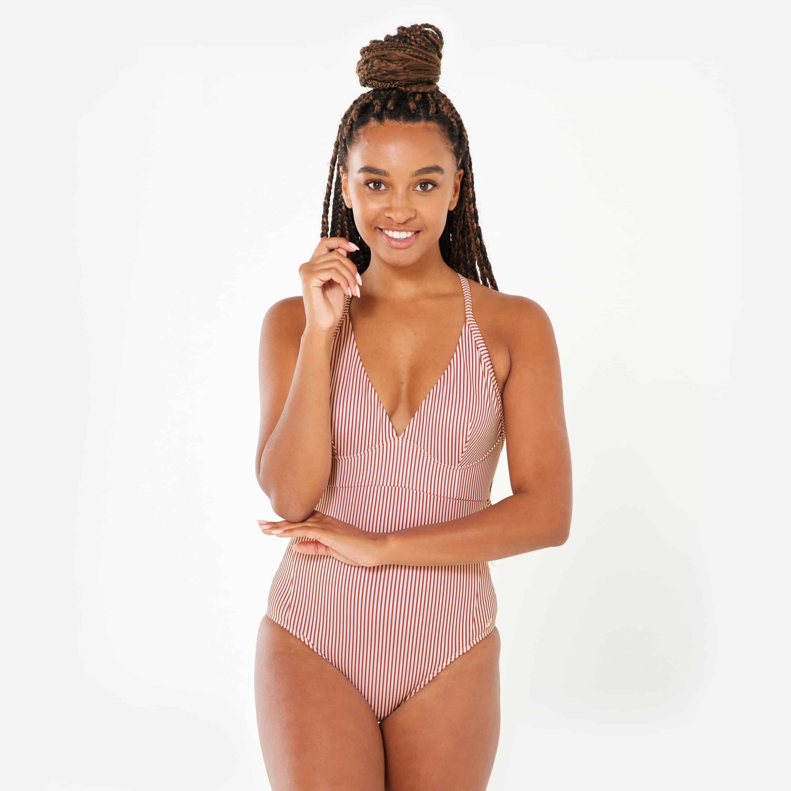 Decathlon Badeanzug Damen Bea rot/weiß gestreift