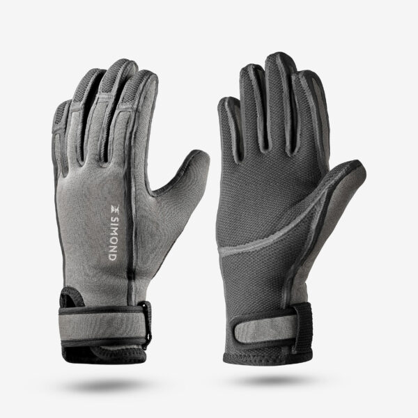 Die Handschuhe bestehen hauptsächlich aus 3 mm dickem Neopren. Die Außenseite ist mit einem strapazierfähigen synthetischen Gewebe und die Handflächen mit einer speziellen, hochgriffigen Beschichtung versehen. Das Innenfutter ist aus einem weichen, schnell trocknenden Material.